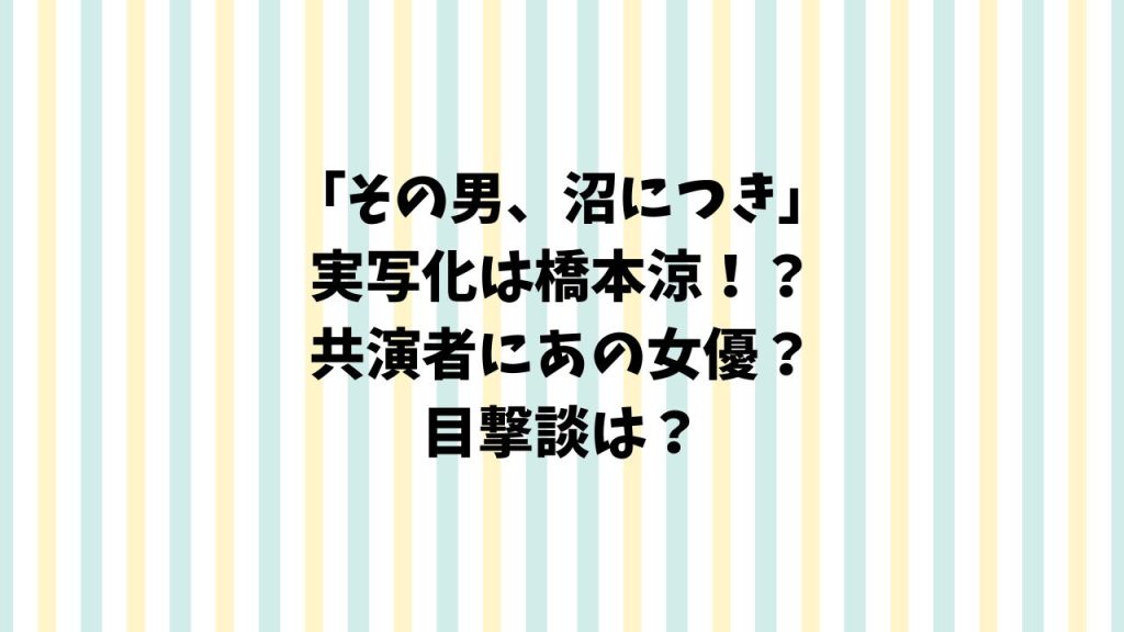 その男、沼につき実写化は橋本涼!?共演者はあの女優?目撃談は?
