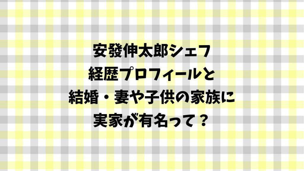 安發伸太郎の経歴プロフィールと結婚・妻や子供の家族に実家が有名?