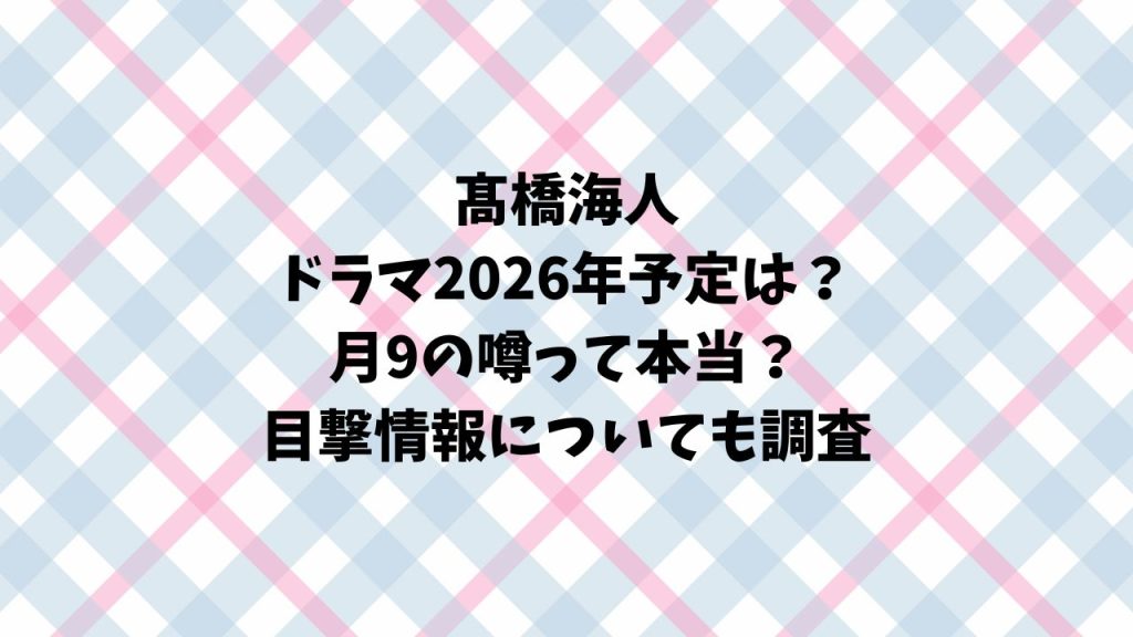 髙橋海人のドラマ2026年予定は?月9の噂って本当?目撃情報についても