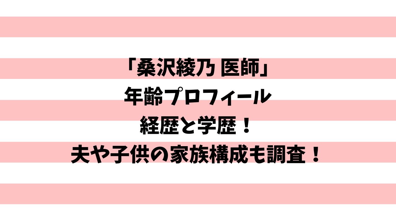 桑沢綾乃医師の年齢プロフィール経歴と学歴に家族構成まとめ