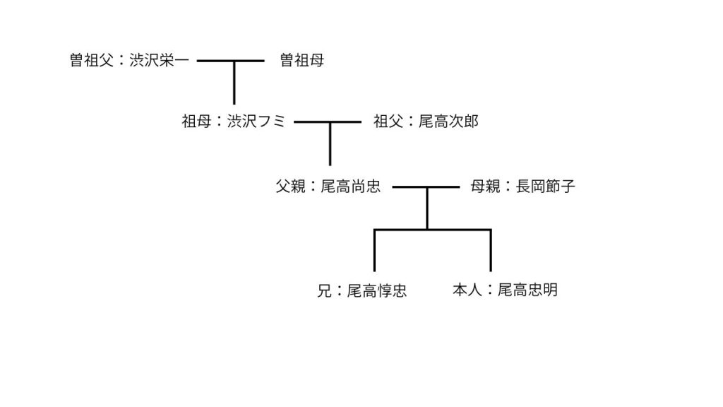 祖母・渋沢フミ氏と祖父・尾高次郎氏の間に誕生したのが、父親である尾高尚忠氏です!