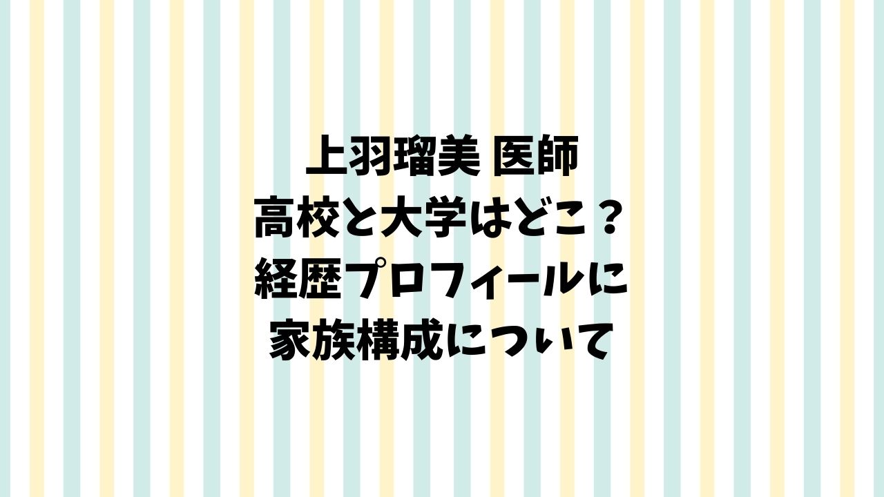 上羽瑠美医師の高校大学は?経歴プロフィールに家族構成も調査!
